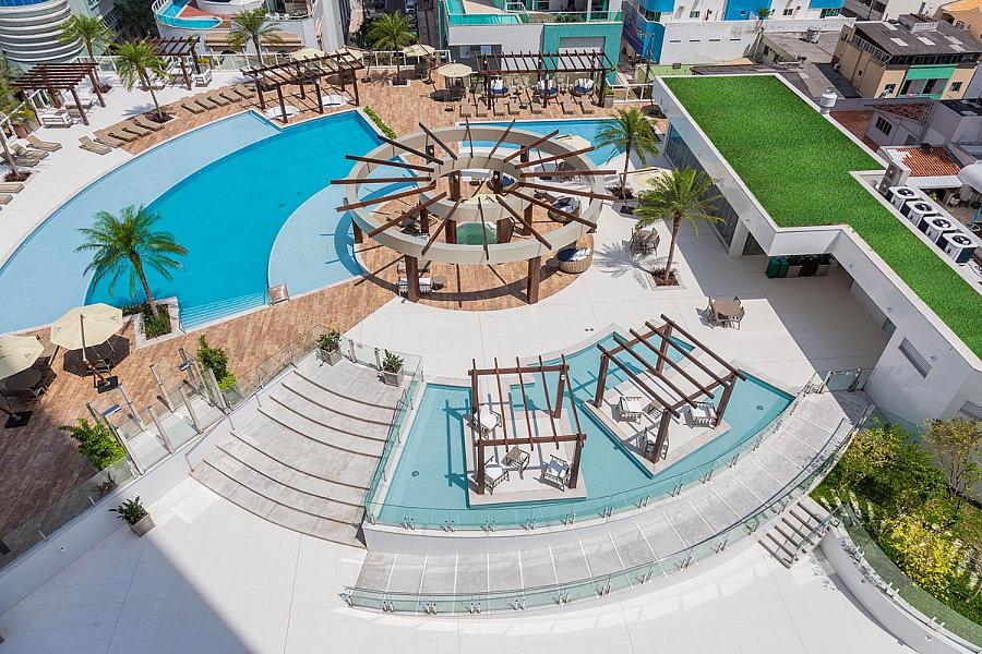 O Edifício Infinity Coast em Balneário Camboriú é um dos empreendimentos home club mais altos das América Latina, área de lazer com mais de 20 opções de entretenimento para todas as idades e arquitetura imponente, piscina adulto e infantil com espelho dágua, salão de festas com espaço gourmet, sala de jogos, business center, pub, bar, playground, baby room, cinema, muro de escalada, mini golf, pomar, game station, academia, pilates, sauna seca e úmida, sala de massagem, sala de descanso, spas externos, quadra poliesportiva e beauty sthetic.